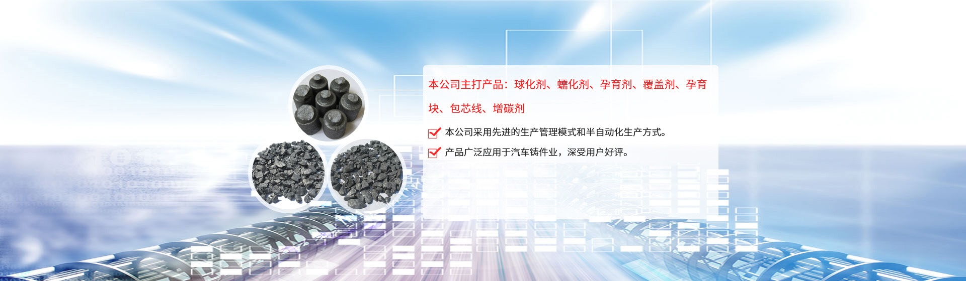 公司引進日本企業(yè)的生產(chǎn)管理模式,半自動化生產(chǎn)方式。目前生產(chǎn)能力:球化劑250T/月、孕育劑300T/月、鑄造相關(guān)品200T/月。為嚴(yán)格控制產(chǎn)品質(zhì)量,公司采用國內(nèi)的ICP-AES等離子體發(fā)射光譜儀對采購原